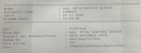 En Kısa Zamanda Aşagıda Görülen Kayıören Köyü Hesabına Yatırılması Gerektigi Vurgulanmıştır.