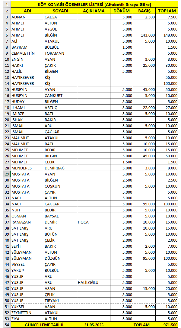 Ödemelerini Yapanları Güncelleyerek Alfabetik Sıraya Göre Burada Yayınlıyor Olacağız